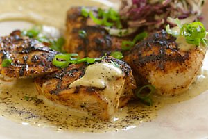 Sixteen-Spice-Rubbed Chicken Breast with Black Pepper Vinegar Sauce and Green Onion Slaw